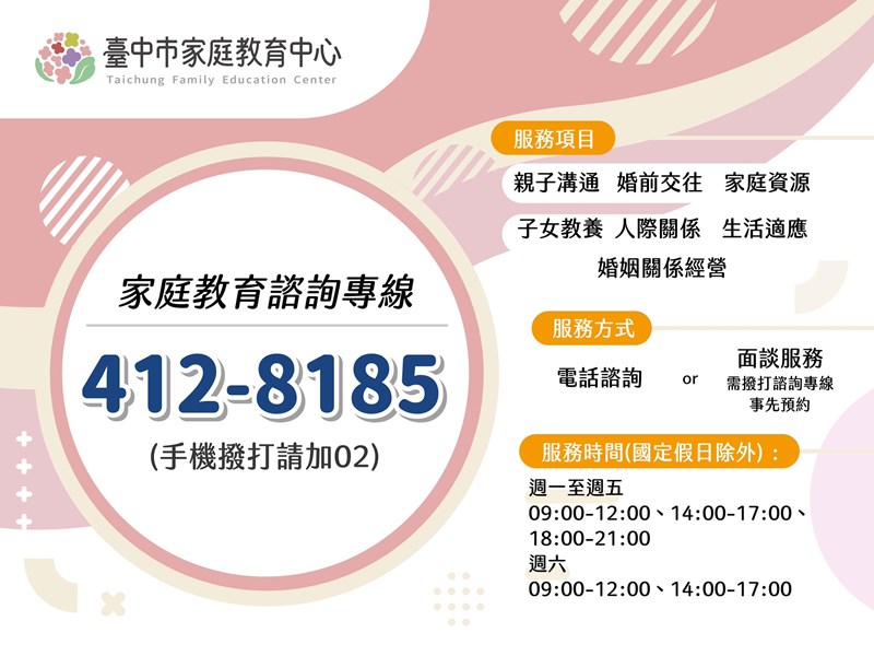 助陣市民婚姻經營 中市家教中心開辦全系列婚姻課程