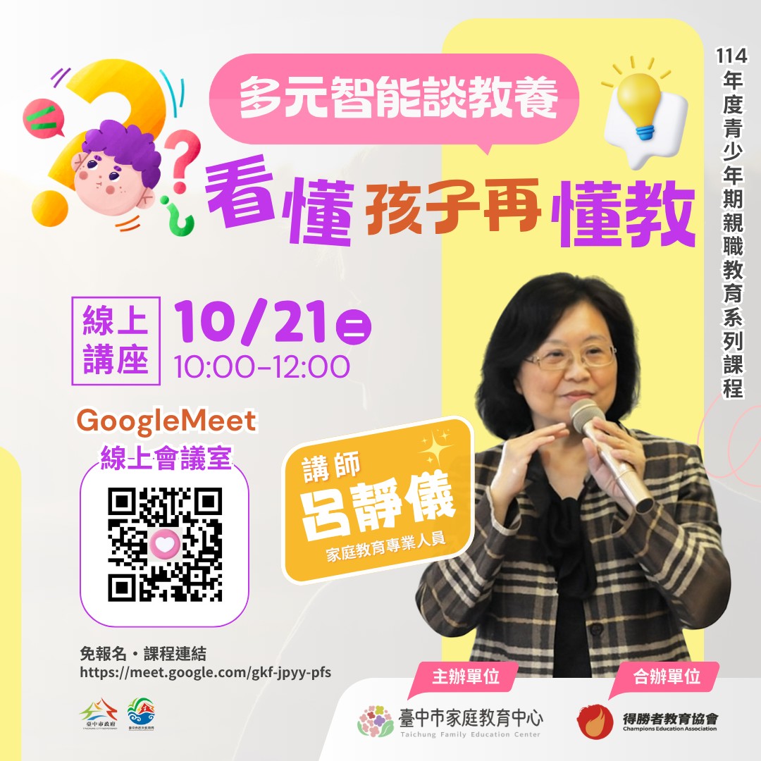 ✨114年度青少年期親職教育系列課程(10月線上講座)✨