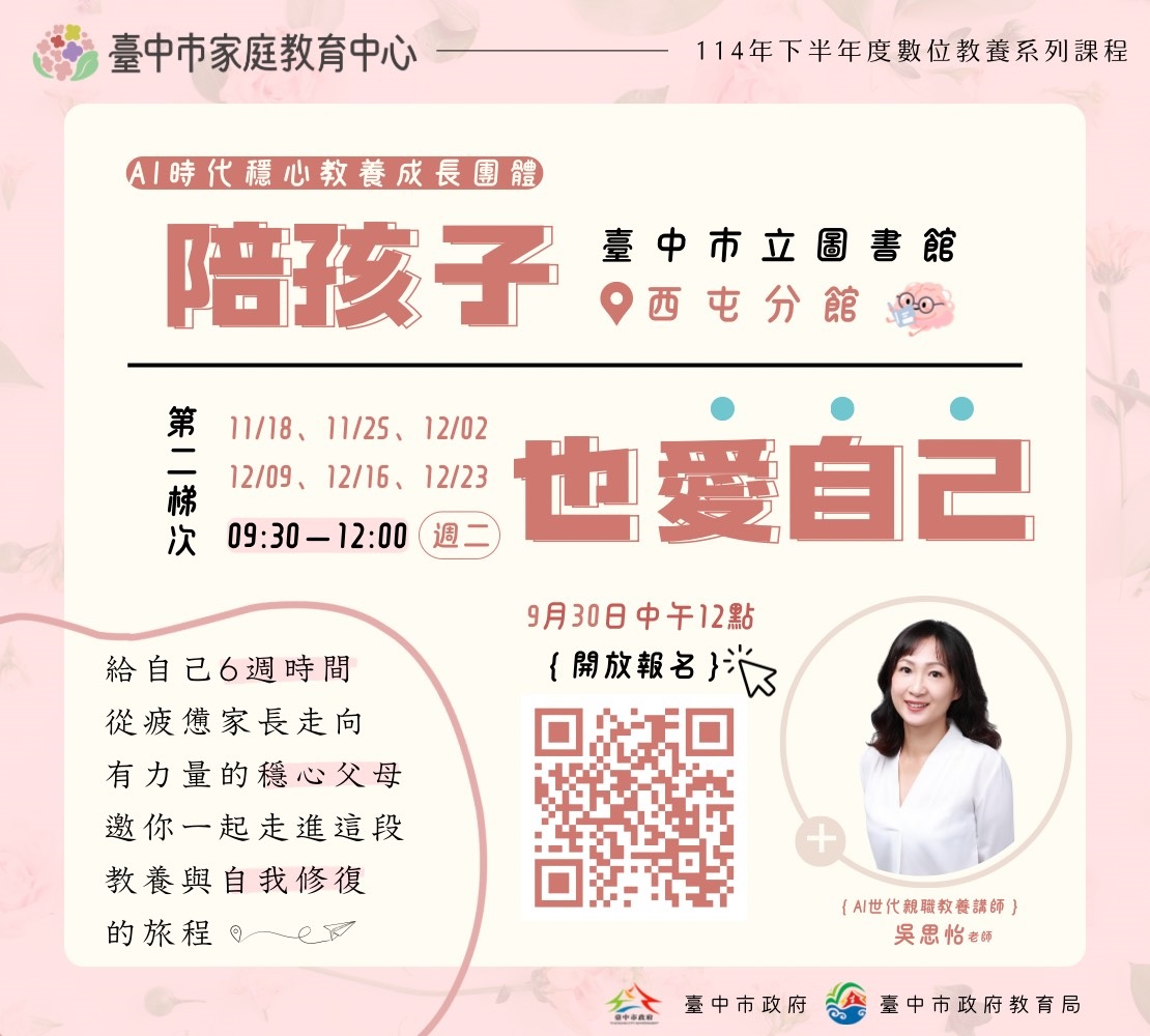 活動名稱 114年度下半年數位教養系列課程【AI 時代穩心教養成長團體】