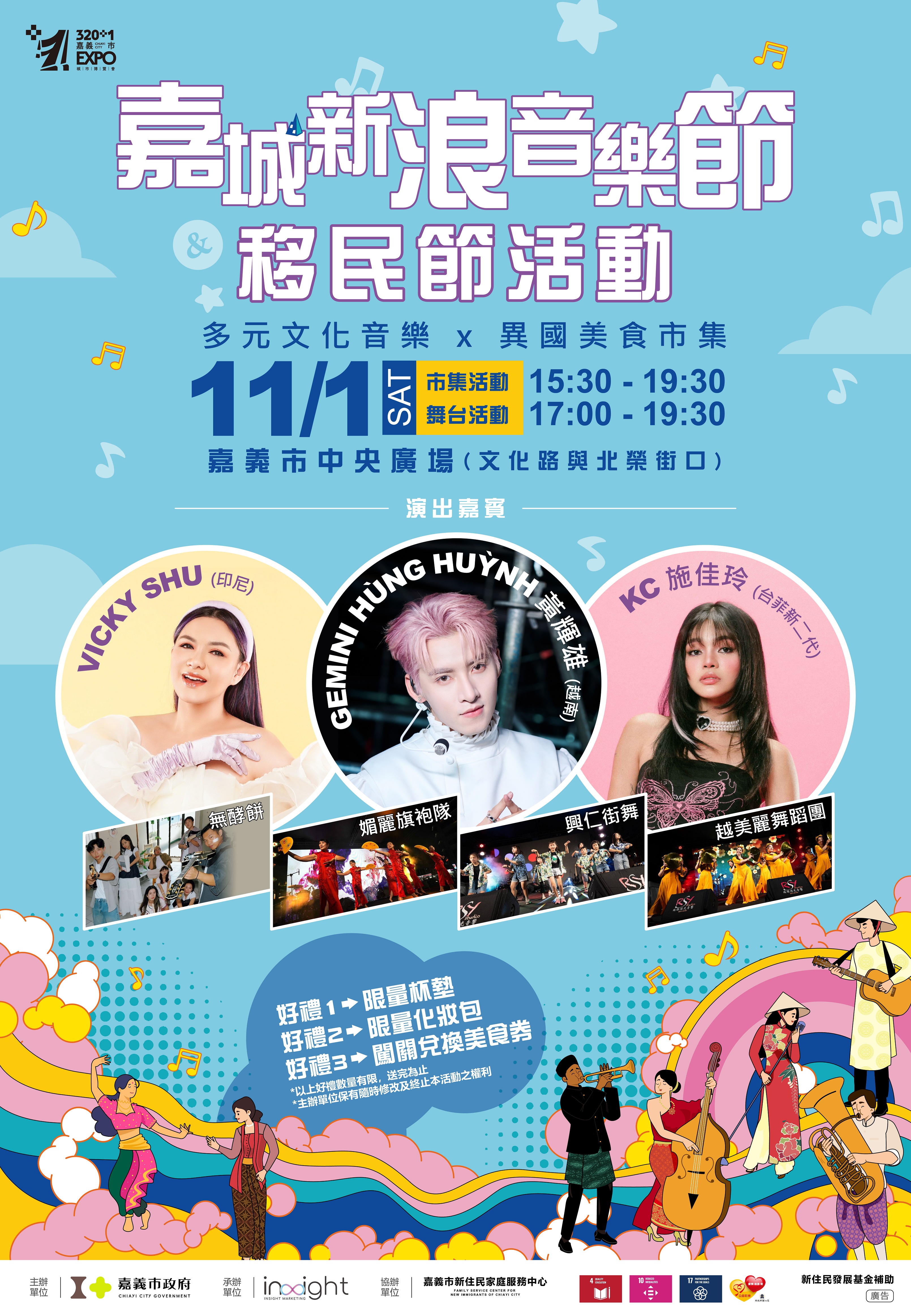 轉知-嘉義市政府辦理114年度「嘉城新浪音樂節暨移民節活動」,請協助宣傳並踴躍參加。