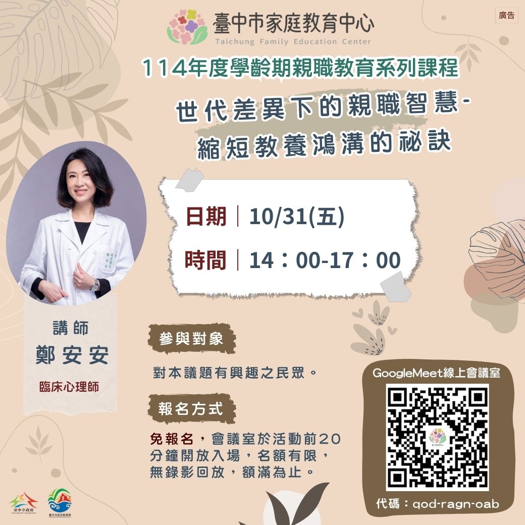 (線上會議室將於講座前20分鐘開放進入,免報名即可參加)