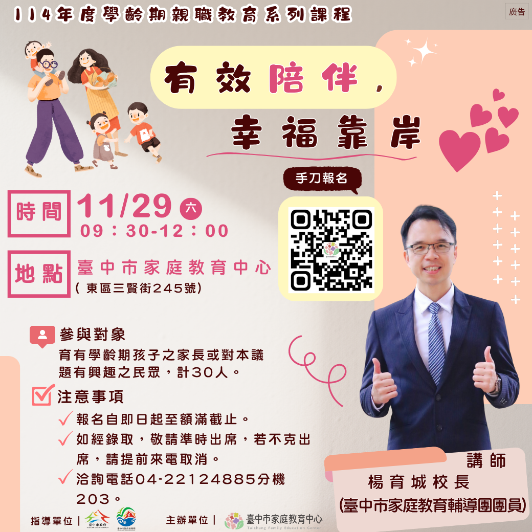 • 發布單位: 臺中市家庭教育中心