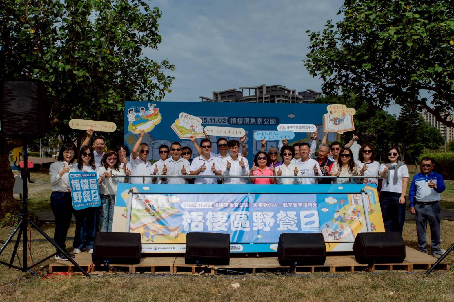 教育局長蔣偉民與梧棲區長溫國宏皆到場與民眾同樂,也有市政顧問王永源、陳明鴻、議員陳廷秀前往,立法委員蔡其昌、臺中市議會議長張清照、副議長顏莉敏、議員楊典忠、王立任亦派代表共襄盛舉。蔣局長致詞表示,市府長期推動「全民閱讀」與「美感生活」政策,期盼閱讀能走出書房、融入生活,透過野餐日形式,讓閱讀走進公園與家庭,讓城市每一片草地都充滿書香與笑聲,使臺中成為「會閱讀、懂生活」的幸福城市。