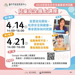 ②參加任一場「兒童安全線上講座」(免報名),全程參與並填寫回饋單(需留電話及Email)。